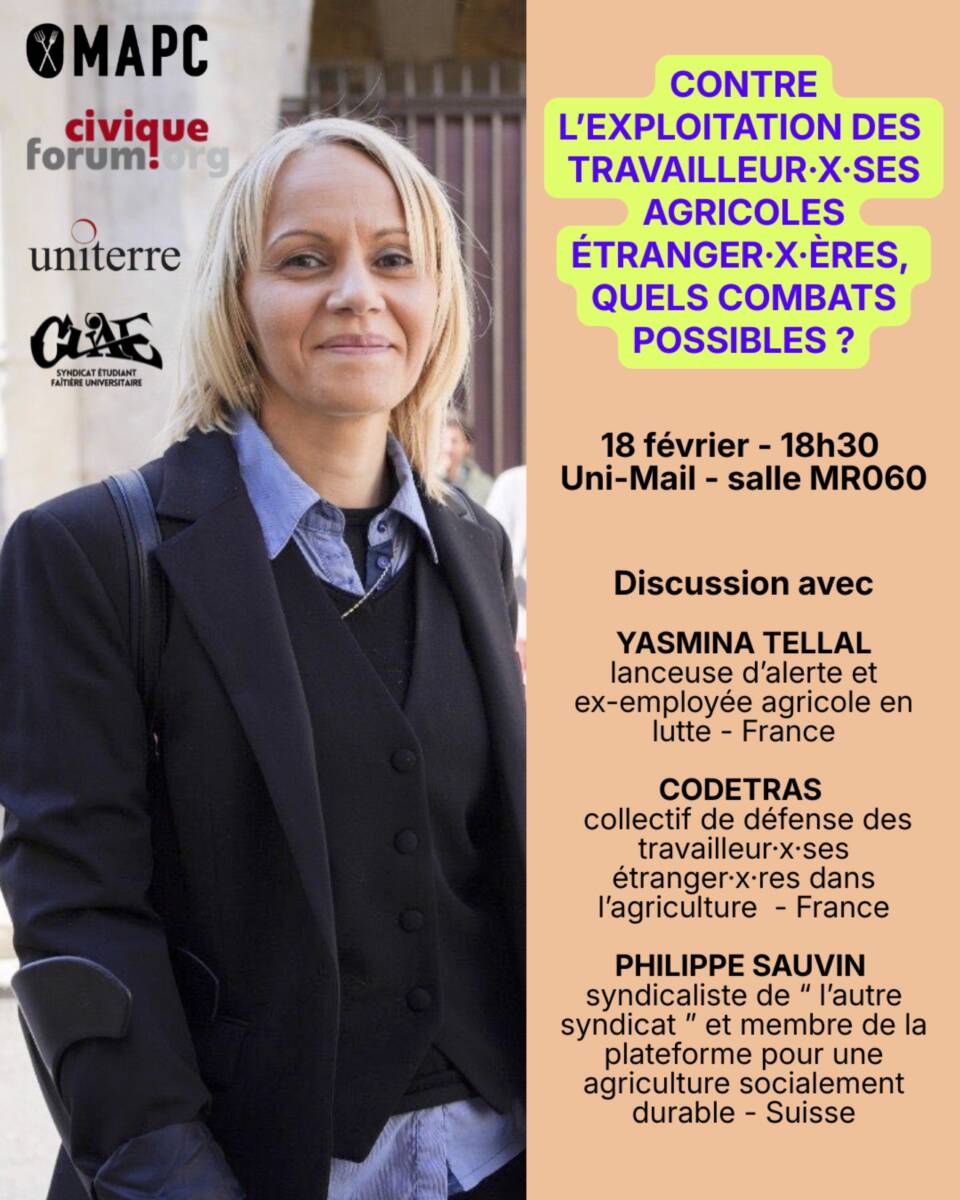 Le MAPC, la CUAE, le FCE, Uniterre vous invitent a venir écouter ces voix de la lutte, à découvrir leurs parcours, leurs combats et leurs espoirs.