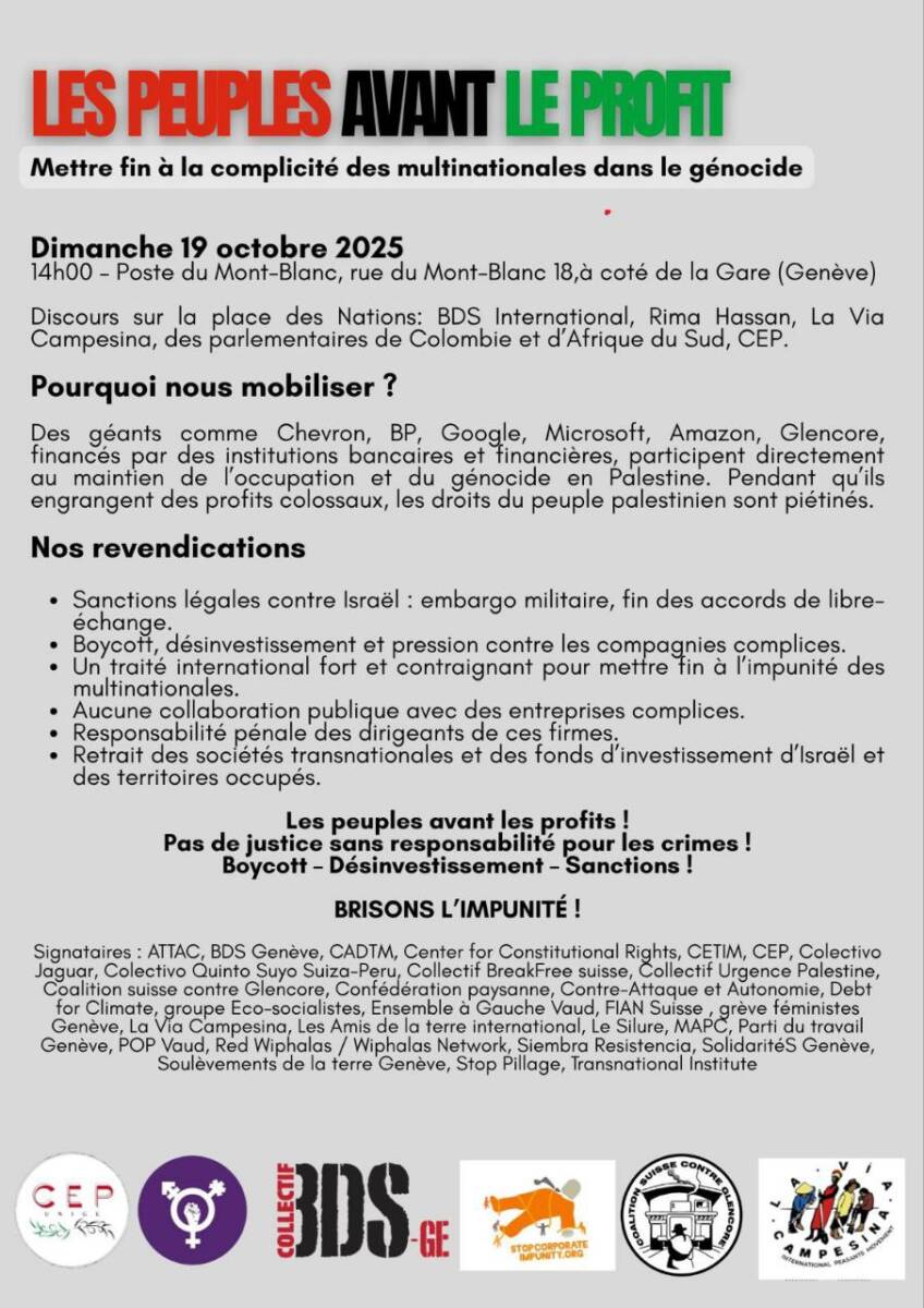 Les peuples avant le profit ! Mettre fin à la complicité des multinationales dans le génocide