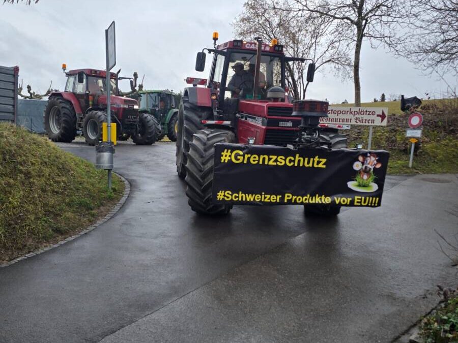 Rund 40 Milchproduzenten, begleitet von Traktoren, die von den Organisationen BZS (Bäuerliches Zentrum Schweiz) und BBK (Bernisches Bäuerliches Komitee) aufgerufen worden waren, demonstrierten heute vor dem Hauptsitz des Agrar- und Lebensmittelkonzerns Mondelez. Sie protestierten gegen die von Mondelez geplanten Butterimporte für seine Schokolade Toblerone.