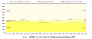 5 Document Analyse de la filière laitière suisse, 2024 – AGRIDEA – https://www.agridea.ch/fileadmin/AGRIDEA/Theme/Marches__filieres_agricoles_et_alimentaires/Marches_agricoles_et_alimentaires/V12_Rapport_LAIT_OFAG_FR_def_corr08102024.pdf